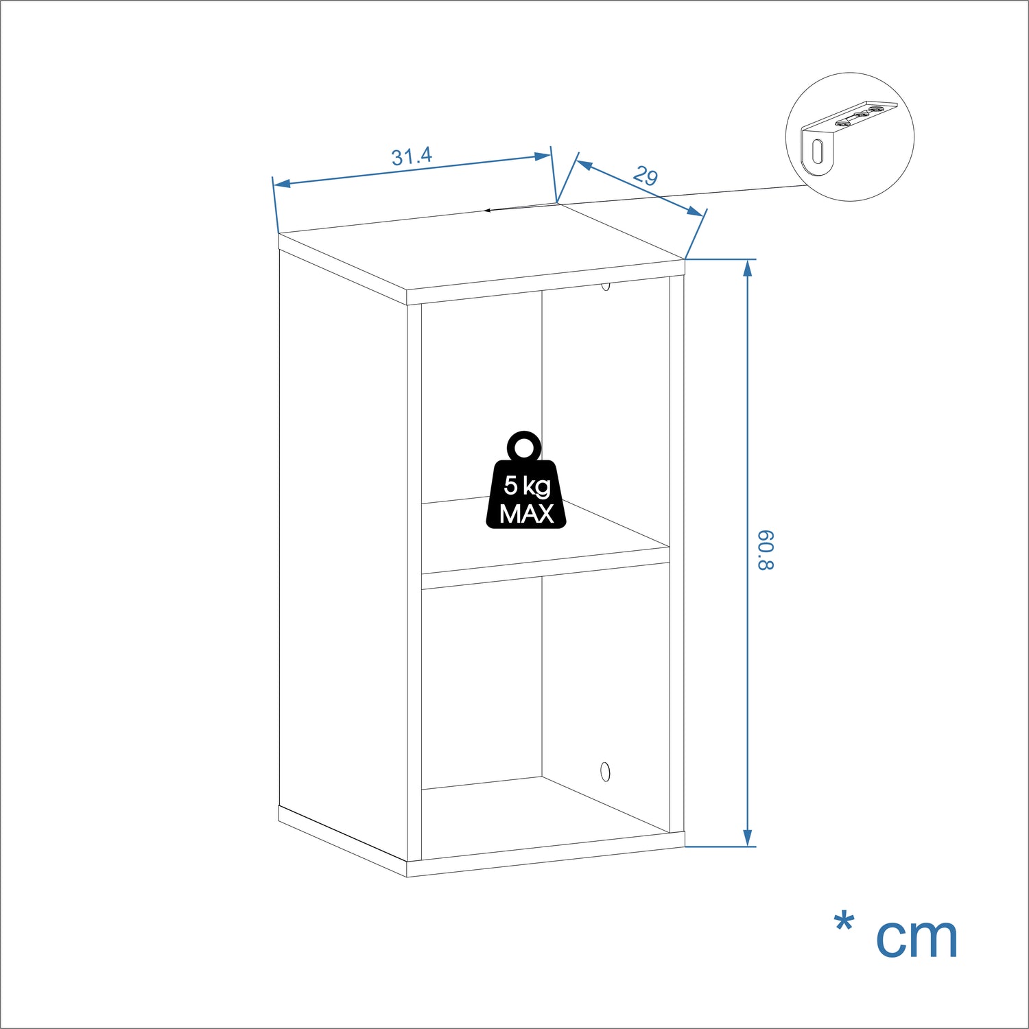 Kompakte Maße: 31,4 x 60,8 x 29 cm – platzsparend und ideal für jeden Raum, auch als schmaler Raumteiler geeignet.